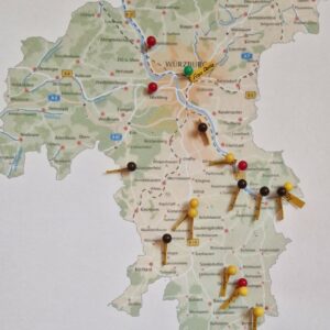 Anschließend zeigte die Klasse 2/3/4 ihre zum Thema „Landkreis Würzburg und dessen Aufgaben“ gestaltete Pinnwand. Auf einer Landkarte hatte jedes Kind eine Pinnnadel auf seinen Wohnort gesetzt sowie rote Nadeln auf alle Standorte unserer Schule. Zum Abschluss stellten die Schülerinnen und Schüler ihre selbst formulierten Fragen. So erfuhr die Klasse sowohl Privates als auch Berufliches über Thomas Eberth.