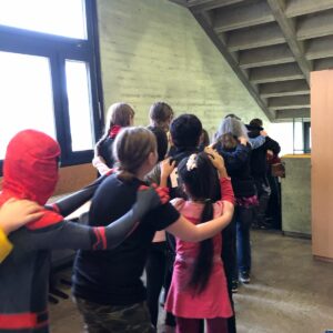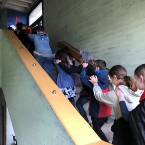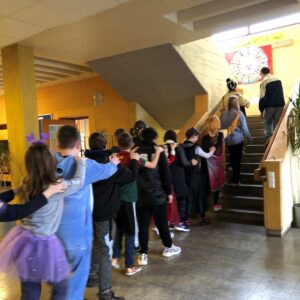 Am Freitag vor den Faschingsferien zogen alle Schülerinnen und Schüler verkleidet in einer langen Polonaise mit Musik und Gesang in die Turnhalle. Dort gab es eine große Bewegungslandschaft und alle hatten viel Spaß.