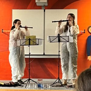 23.10.2025Am Mittwoch, den 17.4.2024 fand an unserer Schule ein Flötenkonzert statt. Die zwei jungen Musikerinnen Marie Erndl und Tabea Wink hatten uns acht verschiedene Flöten mitgebracht und mit diesen Musik in verschiedenen Stilrichtungen dargeboten. Die begleitenden Erklärungen für die Kinder machten die gemeinsame Stunde zu einem entspannten Ereignis, das allen Zuhörern viel Freude bereitete.