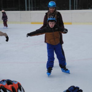 Die ersten Schritte auf der Eisfläche sind selbst bei geübten Eisläufern und Eisläuferinnen nach einer längeren Pause oft etwas wackelig. Aber jedes Kind drehte am Ende unseres Besuchs mehrere Runden auf dem Eis. Jeder und jede auf seine bzw. ihre Weise 😊.