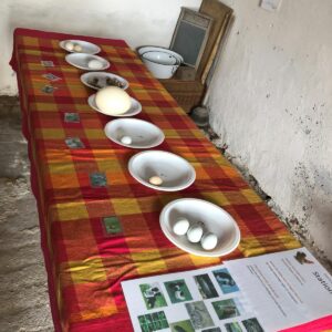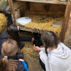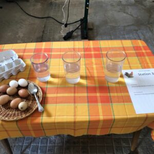 23.10.2025Im Sachunterricht beschäftigte sich die Klasse 3/4 in der letzten Woche mit dem Thema „Ei und Huhn“. Heute machten wir einen Ausflug auf den Erlebnisbauernhof in Gadheim. Von der Schule aus liefen wir bei herrlichem Wetter auf schönen Wegen durch Veitshöchheim, durch den Wald und am Mittelpunkt der EU vorbei in einer knappen Stunde nach Gadheim. Dort wurden wir von Karin Keßler empfangen, die den landwirtschaftlichen Hof schon in der vierten Generation betreibt. Wir beobachteten ihre Hühner, lernten ihren Hahn Oskar kennen, durften die Tiere streicheln und lernten Vieles über ihre Leben. An einzelnen Stationen probierten wir aus, wie man frische von alten und gekochte von rohen Eiern unterscheiden kann, verglichen Eier verschiedenster Tiere miteinander, lernten den Aufbau des Eies kennen und konnten die Entwicklung des Kükens im Ei an Fotos nachvollziehen. Anschließend bereiteten wir aus den Eiern leckere Waffeln zu. Viel Spaß hatten wir außerdem am Füttern der Hasen und den großen Traktoren, in die sich die Kinder setzen durften. Gestärkt und glücklich liefen wir wieder zurück zur Schule.